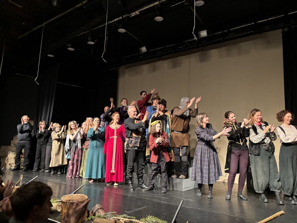 Artistic director Siobhan Dunne takes the applause at the final performance of Macbeth at The Bull Theatre…and already she is planning the next production by the Blue Door Company, High Barnet’s highly acclaimed drama group.