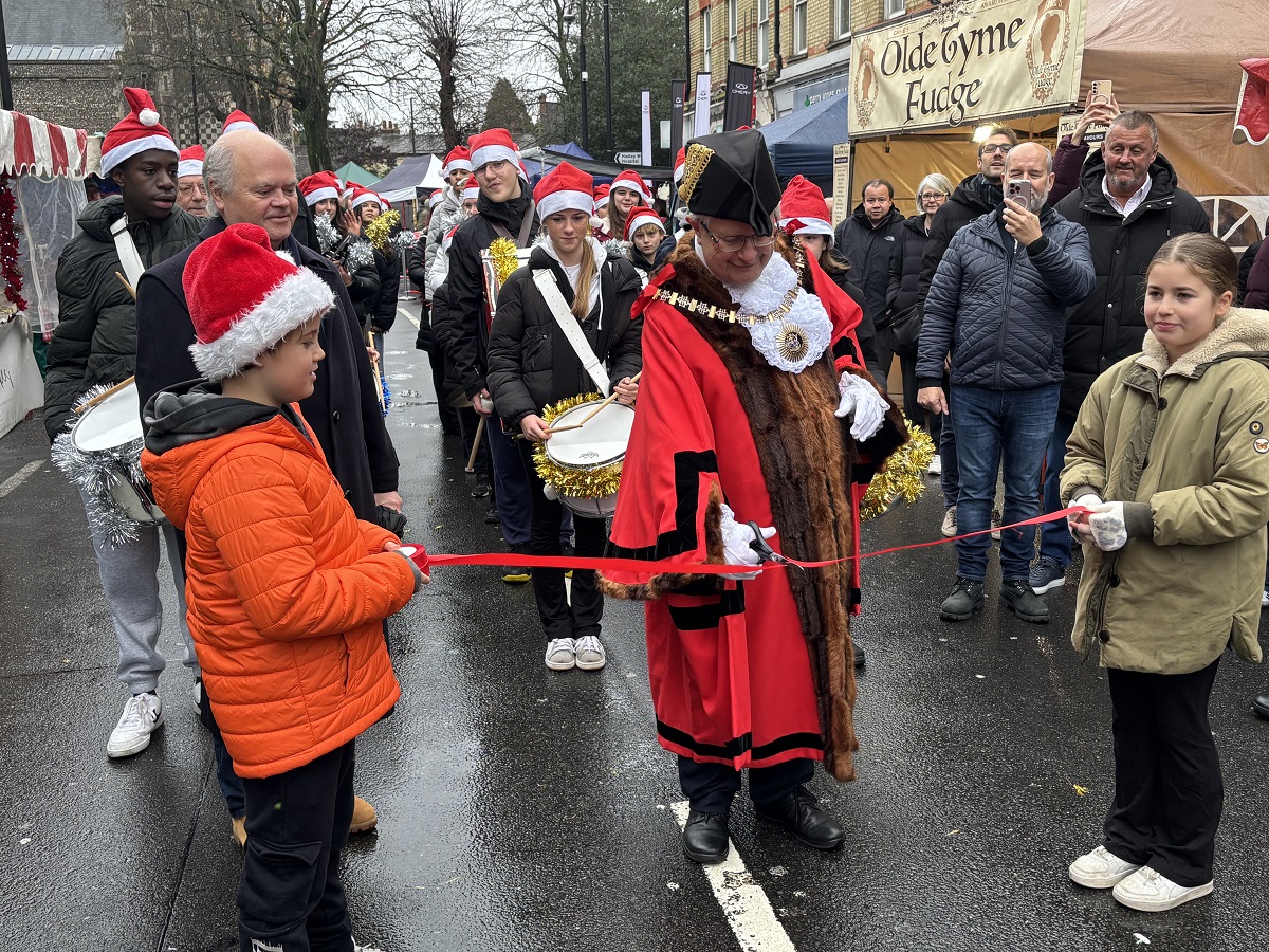 Heavy rain did not dampen enthusiasm at Barnet’s annual Christmas fayre which was opened by the Mayor of Barnet Councillor Danny Rich with a rallying cry to residents to support their local shops and businesses.