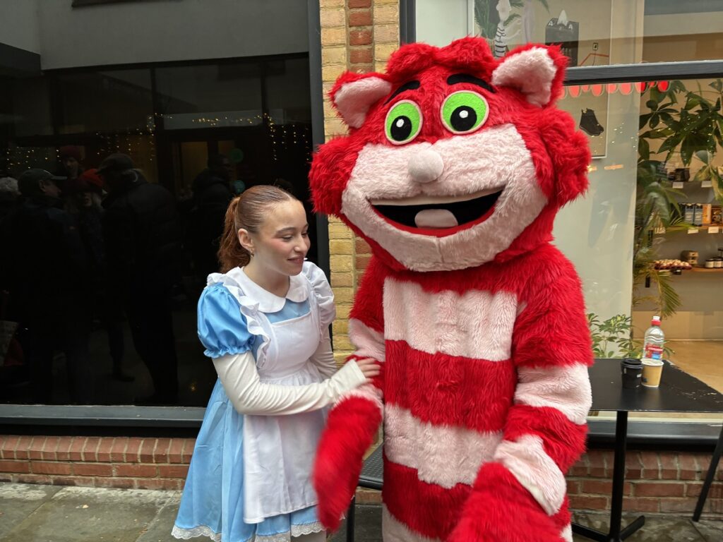 Entertaining visitors at The Spires shopping centre were two characters – Alice (Montana Jackson) and Cheshire cat (Leo Marshall) – from The Bull Theatre’s Christmas pantomime Alice in Wonderland and the Stolen Christmas List.