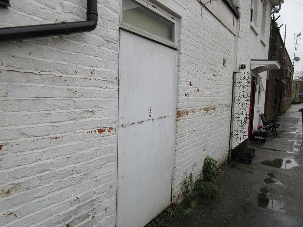 Access to the property appears to be via a heavy door at the rear in Nesbitts Alley – the only indication of habitation is a peep hole.