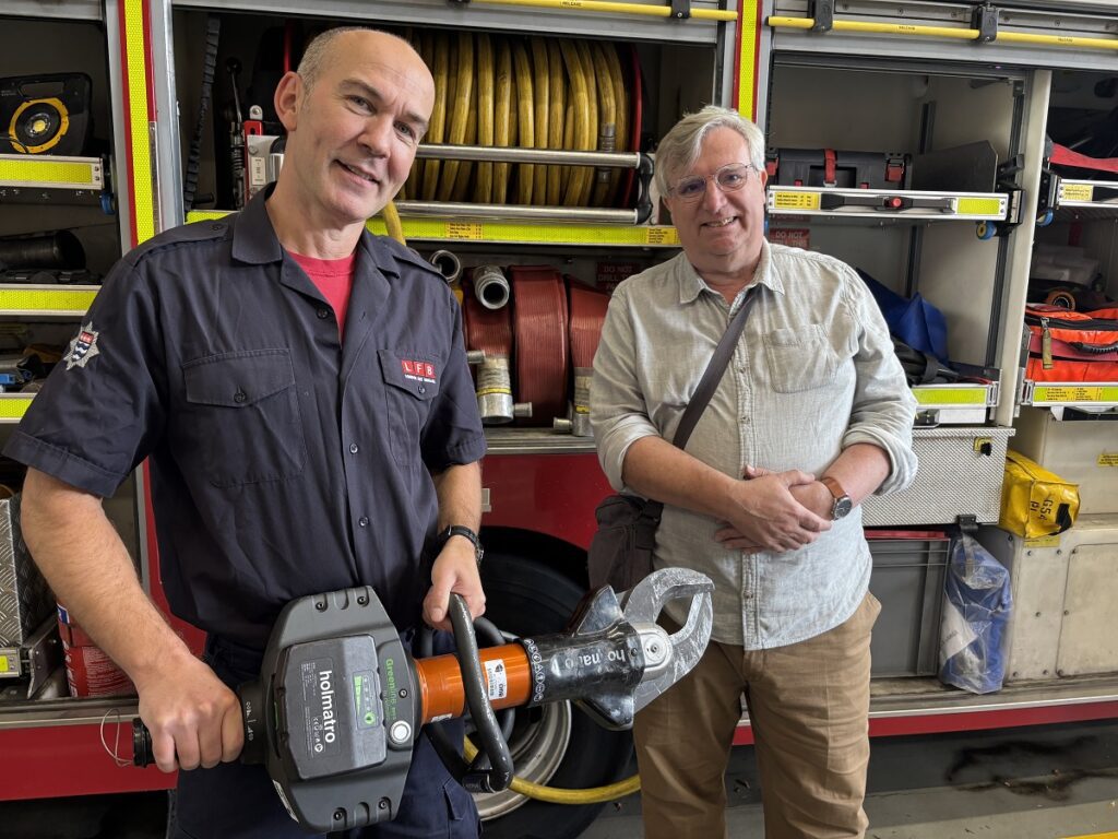 Long-serving Barnet firefighter Nick Russ showed Barnet Vale Councillor Richard Barnes the heavy-duty metal cutter needed to cut through the bodywork of a crashed car, take off the roof and free injured passengers.