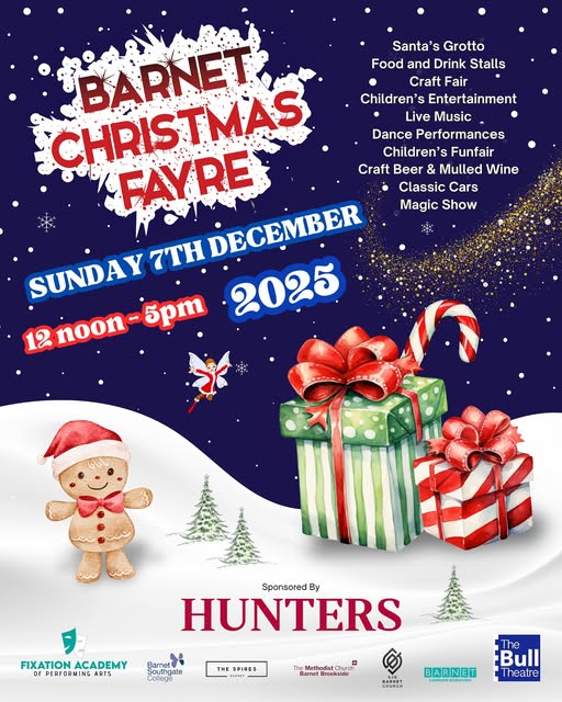 Together with elves and other characters from the Bull Theatre, he will proceed to the marque on the Christmas Courtyard in the piazza outside Barnet College where he will welcome everyone and start the event.