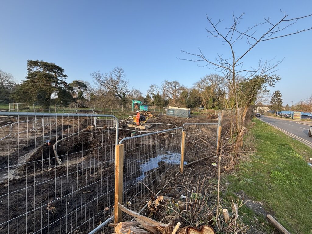 Work has started on foundations for a new studio which is being built for the Barnet Guild of Artists as part of the housing development which is underway in the Whalebones fields and woodland off Wood Street, Barnet.
